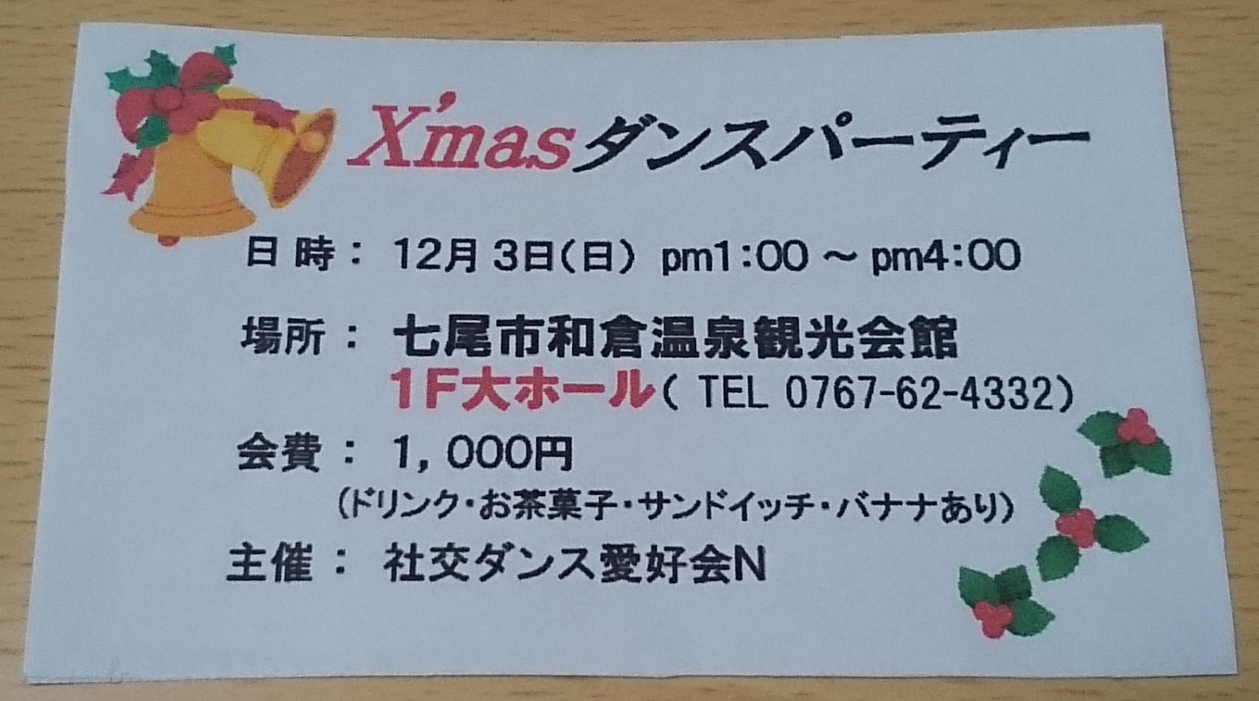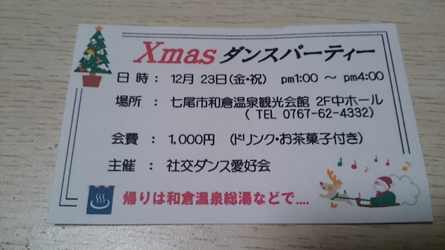 2016年石川県七尾市社交ダンス愛好会クリスマスダンスパーティー 2016年12月23日(祝)13:00-16:00 七尾市和倉温泉観光会館2階中ホール 石川県七尾市和倉町弐部13-1 石川県七尾市和倉町2-13-1 0767-62-4332 主催:社交ダンス愛好会 2016年12月23日クリスマスダンスパーティー石川県七尾市和倉温泉観光会館2階中ホールの案内.jpg |