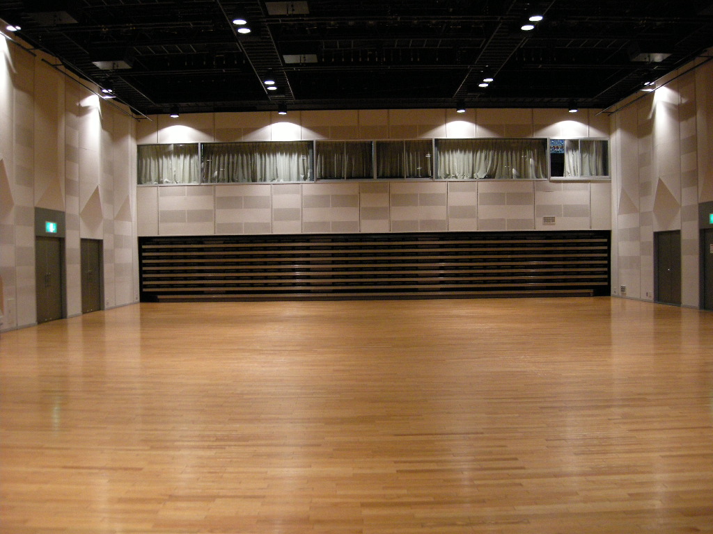 ↑日暮里サニーホール4階ホールの写真(社交ダンスパーティーの時はパイプ椅子が壁際にビッシリ並べられます)